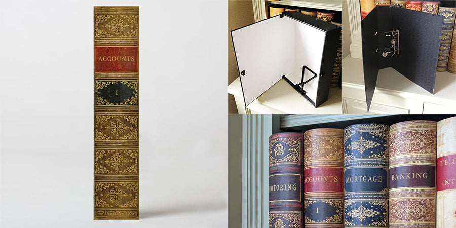 Precision printed classic book design office files with customised title option - Organise your filing and create a traditional library aesthetic - Foolscap Box File, A4 Box File or Lever Arch ring binder options - Add your own title(s) for a truly personalised system